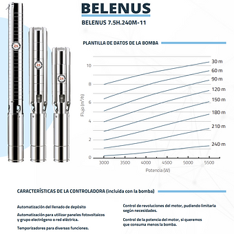 Descripción Bomba de agua Solar Sumergible BELENUS 7.5H.240M-11