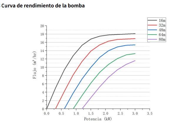 - Altura Máxima de Bombeo: La altura máxima a la que puede elevar el agua, medida en metros.