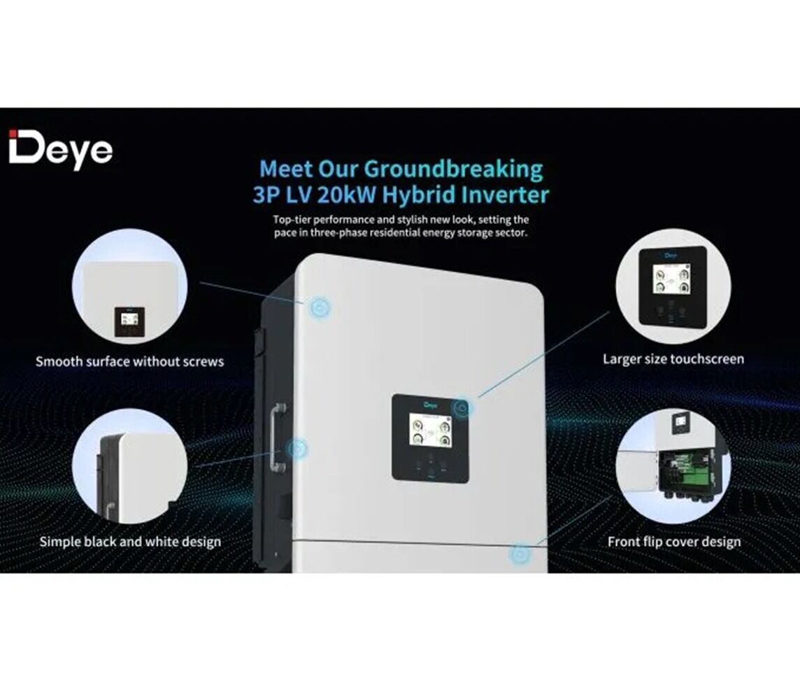 El Deye SUN-15K-SG05LP3-EU-SM2 Nuevo vision diseño para exterior es un inversor solar híbrido trifásico de 15 kW, diseñado para aplicaciones residenciales y comerciales que requieren sistemas de almacenamiento de energía de baja tensión (48 V). Este modelo destaca por su versatilidad, eficiencia y capacidad de integración con diversas soluciones de almacenamiento y generación energética.